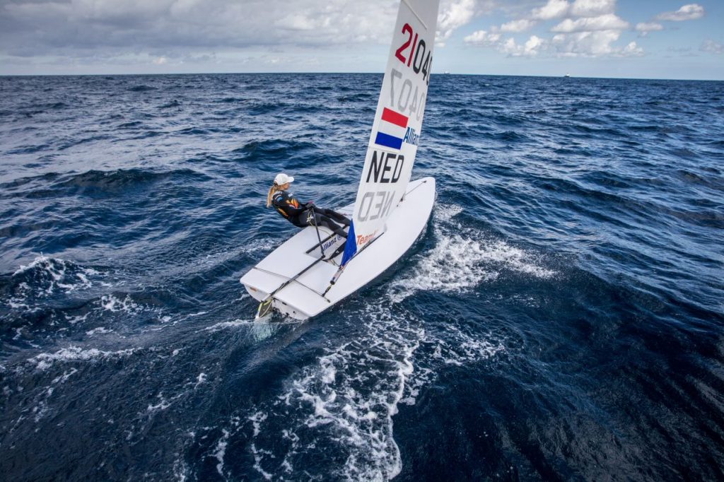 ‘Tijdens de Olympische Spelen in Tokio ging ik bijvoorbeeld een uur voor de wedstrijd het water op. Dan gaan zowel ik als mijn coach metingen verrichten. Wat voor een dag is het, hoe is de wind en de stroming. Dan maak je een “game plan” voor de wedstrijd. Maar er zijn nog zestig andere meiden die ook een plan hebben. Dus dan komt het er op aan wie het plan het beste uitvoert.’