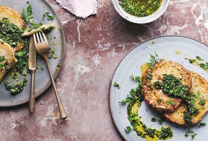 ‘Van alle groente en fruit die we kopen, belandt ongeveer een op de drie stuks bij het vuilnis.’ Zulke feitjes laten je toch even schrikken. Gelukkig zijn er kookboeken als No waste groenten van Sophie Gordon die handige tips en lekkere recepten geven om minder voedsel te verspillen door je restjes op te maken. Probeer … Meer lezen over Recept: Knolselderij-steaks met chimichurri